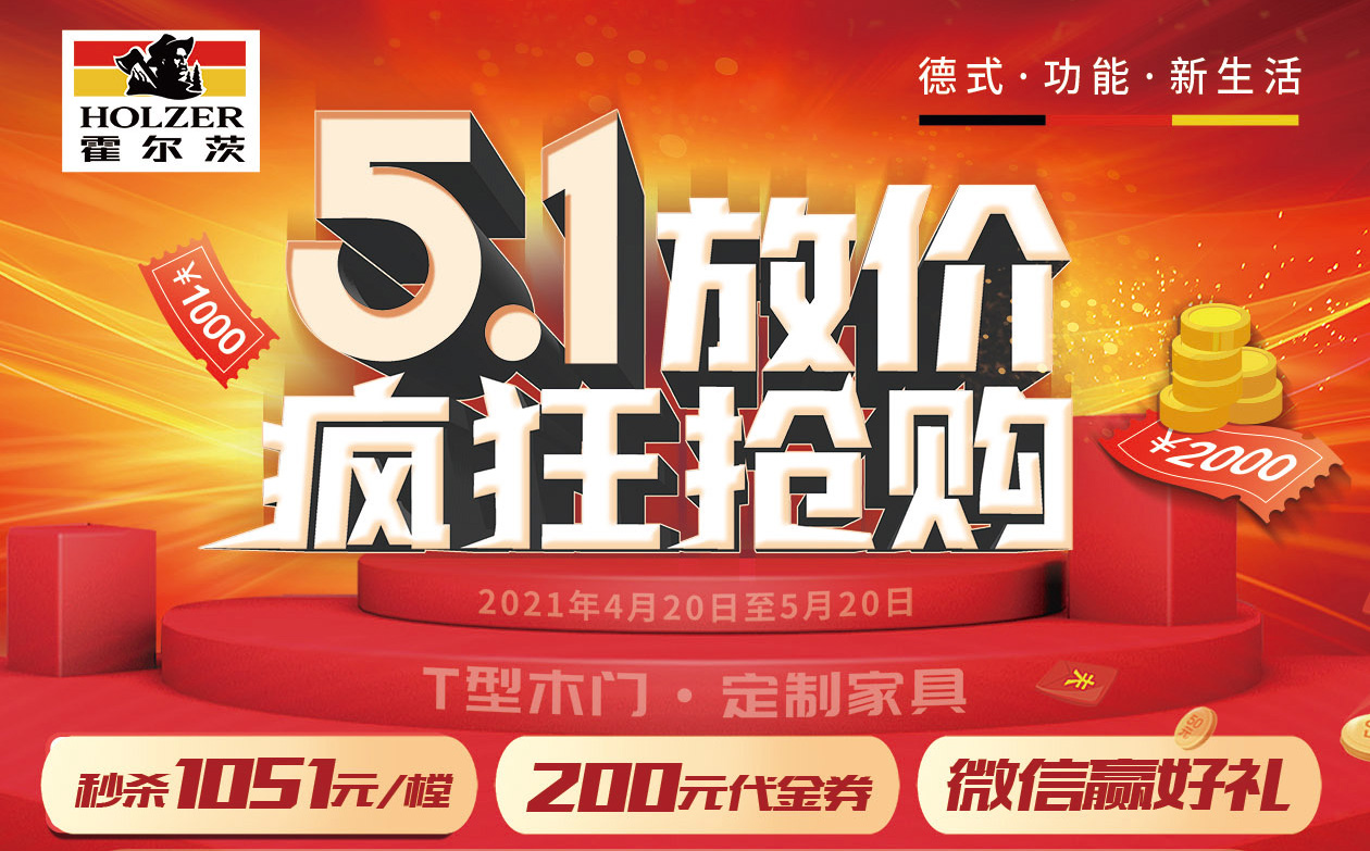 随着疫情稳定,装修旺季已经到来,霍尔茨在五一期间疯狂放价,带来多重优惠,与您共庆假期。